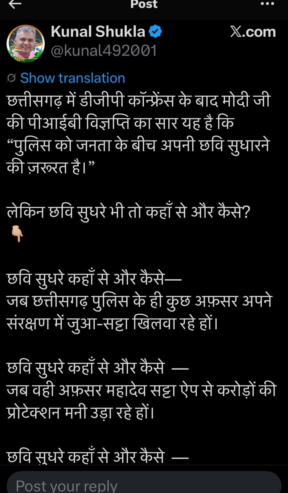 छत्तीसगढ़ पुलिस की छवि पर कुणाल शुक्ला का सीधा हमला — “जब अफसर ही जुआ–सट्टा चलवाएँ, तो कौन–सा फ़ोटोशॉप छवि सुधारेगा?”किस एसपी पर है निशाना—प्रदेश […]