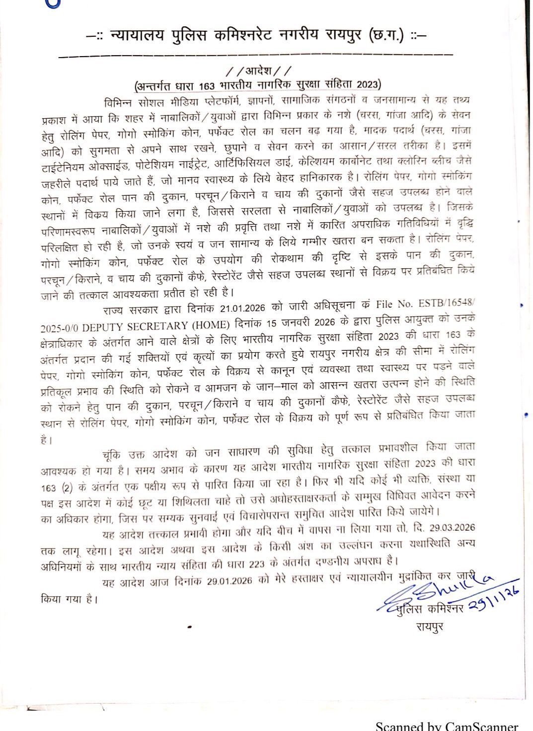 Raipur Police Commissioner:– रायपुर पुलिस कमिश्नर ने जारी किया पहला दंडाधिकारी आदेश,नशे की रोकथाम के लिए लिए हुआ यह आदेश जारी