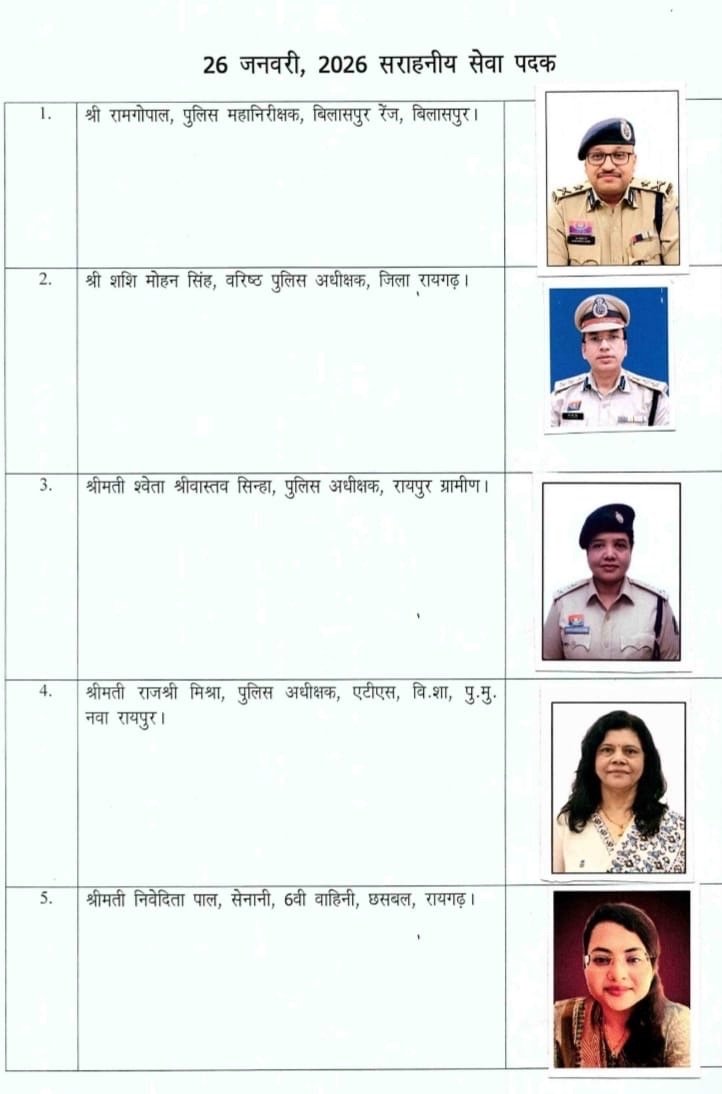CCG Police Medal:– छत्तीसगढ़ के 11 पुलिस अधिकारियों को राष्ट्रपति पुलिस मेडल से सम्मानित किया जाएगा। इनमें एएसआई से आईजी रैंक तक के अफसर शामिल […]