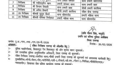 Raigarh रायगढ़। रायगढ़ जिले में वरिष्ठ पुलिस अधीक्षक शशिमोहन सिंह ने पुलिसिंग में कसावट के लिए होली से पहले 9…