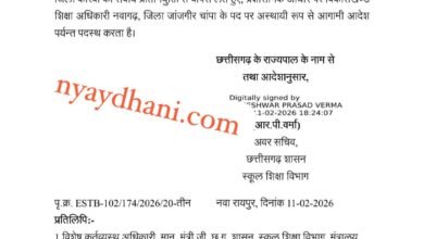 CG News:– इस विकासखण्ड को मिला नया बीइओ राज्य शासन ने जारी किया आदेश