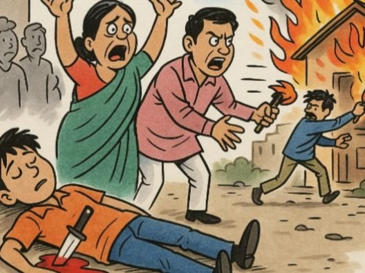 हत्या के बाद तनाव, आक्रोशित परिजनों ने किया आगजनी का प्रयास