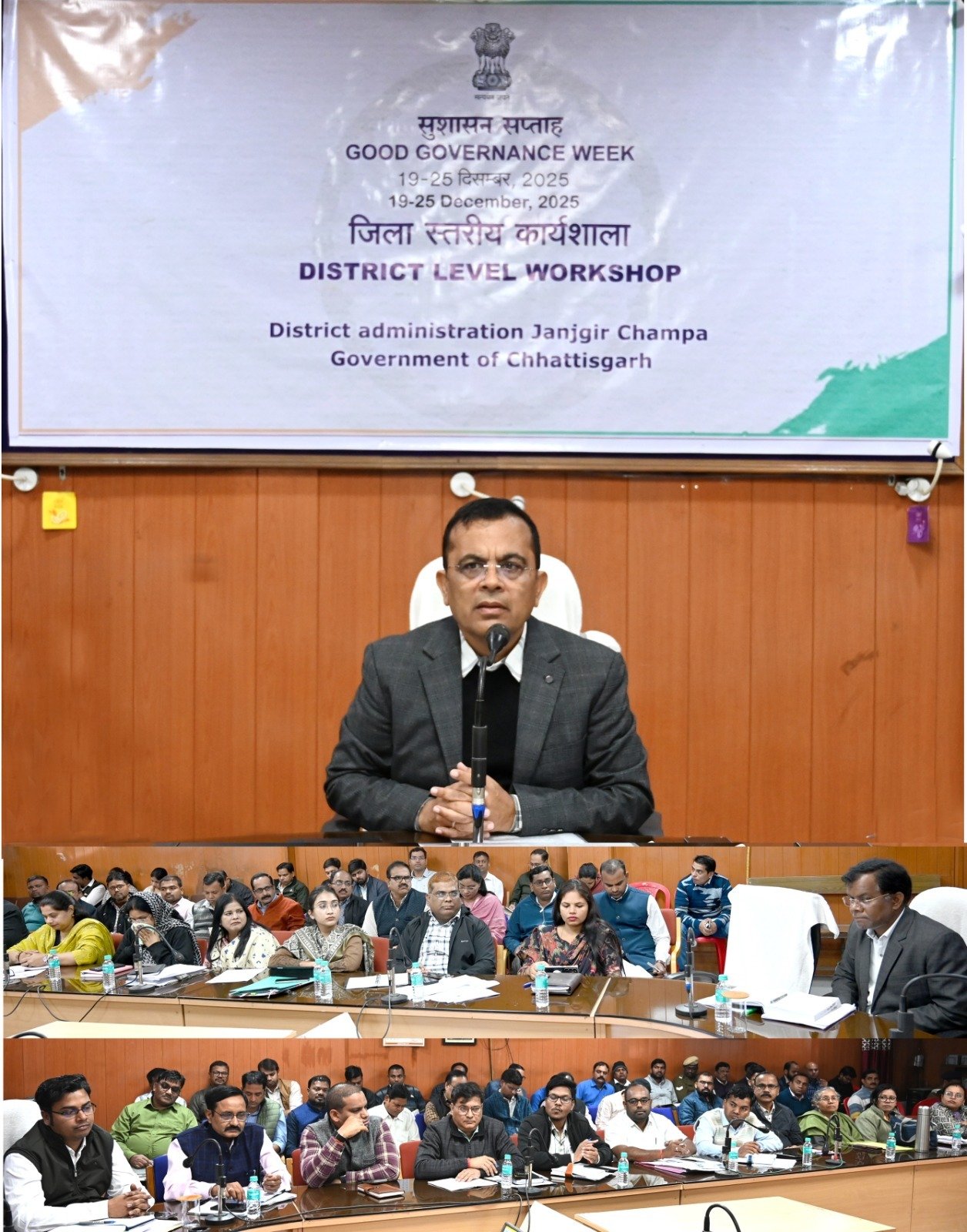 सुशासन सप्ताह के अंतर्गत जांजगीर-चांपा जिले में जिला स्तरीय कार्यशाला का आयोजन किया गया। कार्यशाला में प्रशासनिक कार्यप्रणाली को अधिक पारदर्शी, जवाबदेह और नागरिकों के अनुकूल बनाने पर विस्तृत चर्चा की गई।